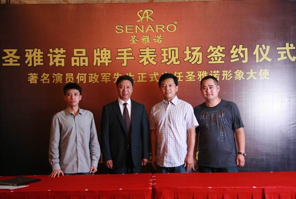 2013年6月15日,佛山南海霖梵鐘表企業(yè)刑總及我司經(jīng)紀人一行飛抵上海,參加在上海松江逸東華酒店的簽約儀式,圣雅諾品牌手表正式聘請何政軍出任代形象大使。何政軍的影視劇代表作有:《國歌》、《十六歲的花季》、《紫荊勛章》、《大雪無痕》、《亮劍》等。針對圣雅諾品牌市場定位,嘉華明星演出團隊特推薦何政軍老師,因其沉穩(wěn)、親切、正派及好男人形象深受觀眾喜愛,得到圣雅諾公司及代理商一致認可。相信通過此次合作,圣雅諾品牌必定在銷售及品牌內(nèi)涵上達到全新高度!