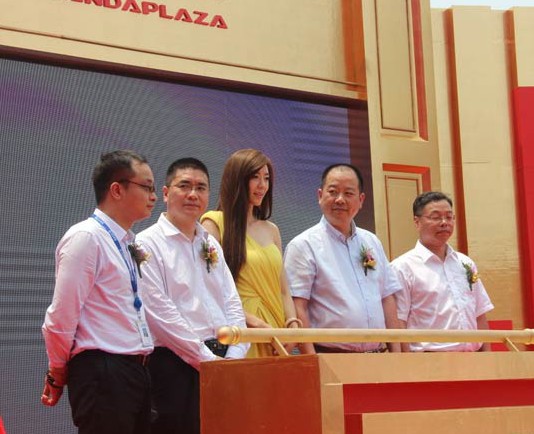 萬達(dá)溫州公司負(fù)責(zé)人與周韋彤在啟動(dòng)儀式上