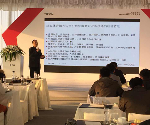2014年12月20日,嘉華明星經紀公司攜著名經濟學家、高級經濟師孫飛教授出席奧迪A8L寧波行業精英交流會,現場,孫飛教授闡述了“新媒體營銷方式給傳統服裝行業帶來的新機遇”的觀點。