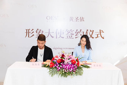 廣州嘉華明星經紀公司為OES品牌量身邀請影視明星黃圣依。OES品牌攜手影視明星黃圣依品牌形象大使簽約儀式于11月20日隆重舉行。